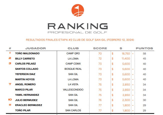 Toño Maldonado, profesional del Club de golf Campestre de Querétaro se proclamó campeón de la segunda Etapa del Ranking Profesional de Golf 2024 que se celebró en el complicado y retador campo del Club de Golf San Gil.